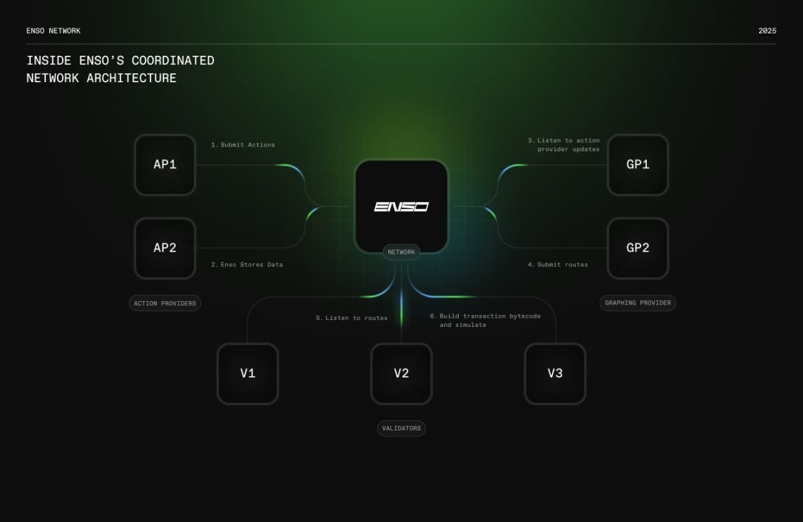 Enso 网络覆盖了读取数据与执行链上操作的整个生态系统。Enso 构建去中心化、开放的网络,使开发者与 AI 智能体都可以贡献执行所需的数据源和智能合约信息。Enso 能通过工具访问所有最新的生态进展,增强开发者粘性,并将新晋 Web3 开发者转化为 Enso 用户。