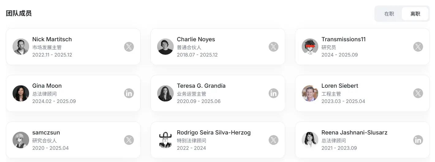 9 月,Paradigm 总法律顾问 Gina Moon、Paradigm 研究员 Transmissions11 离职。