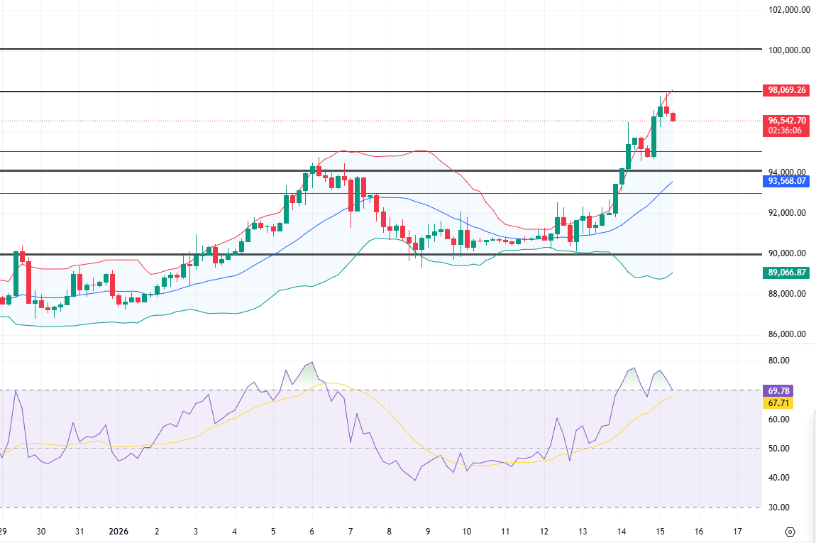 节奏上,日内重点关注回落修复是否延续。下方短期支撑仍以昨日整理区间 95500–94700 为第一防守带,若该区域失守,回调空间将进一步打开,可能向 94000–93000 区域回探;上方反弹阻力继续关注 98000 及10万整数关口。在未形成有效放量突破前,更应将当前行情定义为大区间内的反弹行情,而非单边多头趋势。操作上不宜追高,反而更适合等待回调后的结构确认。