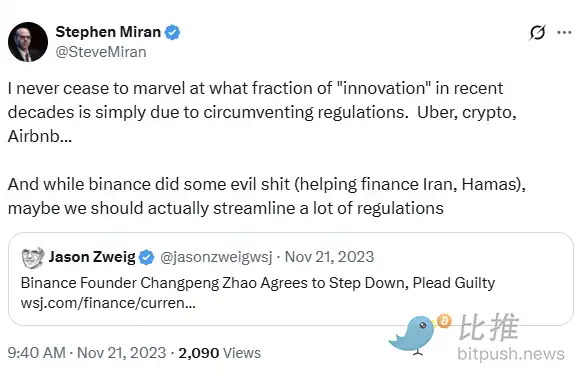 值得注意的是,Miran 并非盲目支持加密行业,他反对的是当前监管碎片化、重复审批与法律模糊的现实,而非监管本身。他在节目中指出: