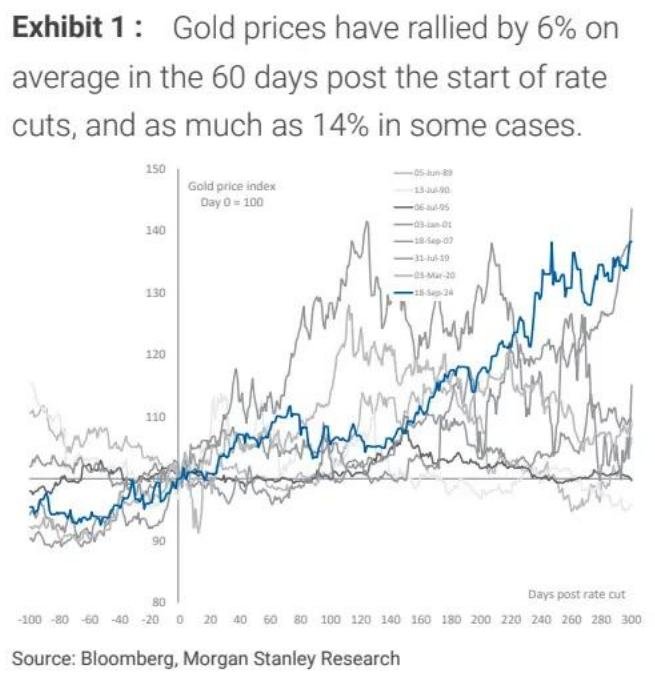 摩根士丹利最新研报指出,贵金属市场正迎来多重利好驱动的上行周期,黄金与白银价格有望在美联储降息周期及宏观环境变化中走出分化行情。据研报分析,历史数据显示美联储降息后贵金属通常呈现显著上涨——黄金在降息后60天内平均涨幅达6%(最高达14%),白银同期平均上涨4%。这一规律为当前市场提供了重要参考。