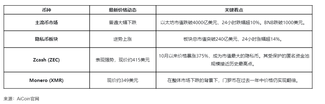 在全球监管收紧与市场普遍下行的双重压力下,隐私币竟逆流而上,成为暗淡加密货币市场中最耀眼的明星。过去一周,加密货币市场整体下行,总市值从3.96万亿美元下滑3.7%至3.81万亿美元。