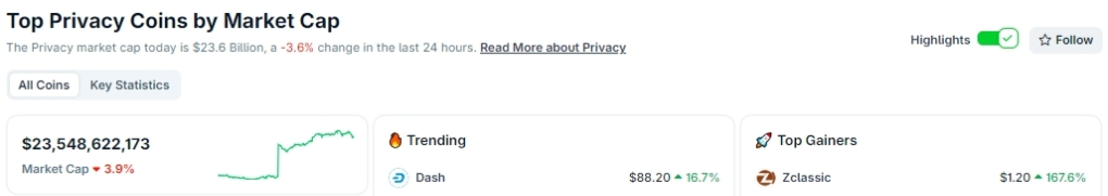 然而就在这一片萧条之中,隐私保护型加密货币却逆势狂飙,市值一度突破240亿美元,飙升约80%。在隐私币阵营中,DASH和ZEC表现尤为亮眼,分别录得65%和9.55%的涨幅,DASH七日涨幅甚至达到68%。