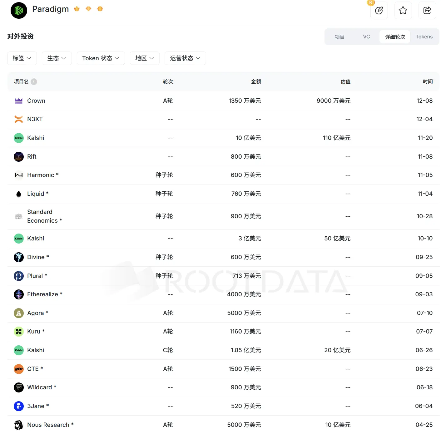 这些典型投资有几个共同特征:并非短期热点,而是底层协议或关键中间层;投资时点相对靠前,但并不极端早期;与 Paradigm 内部研究方向高度一致。