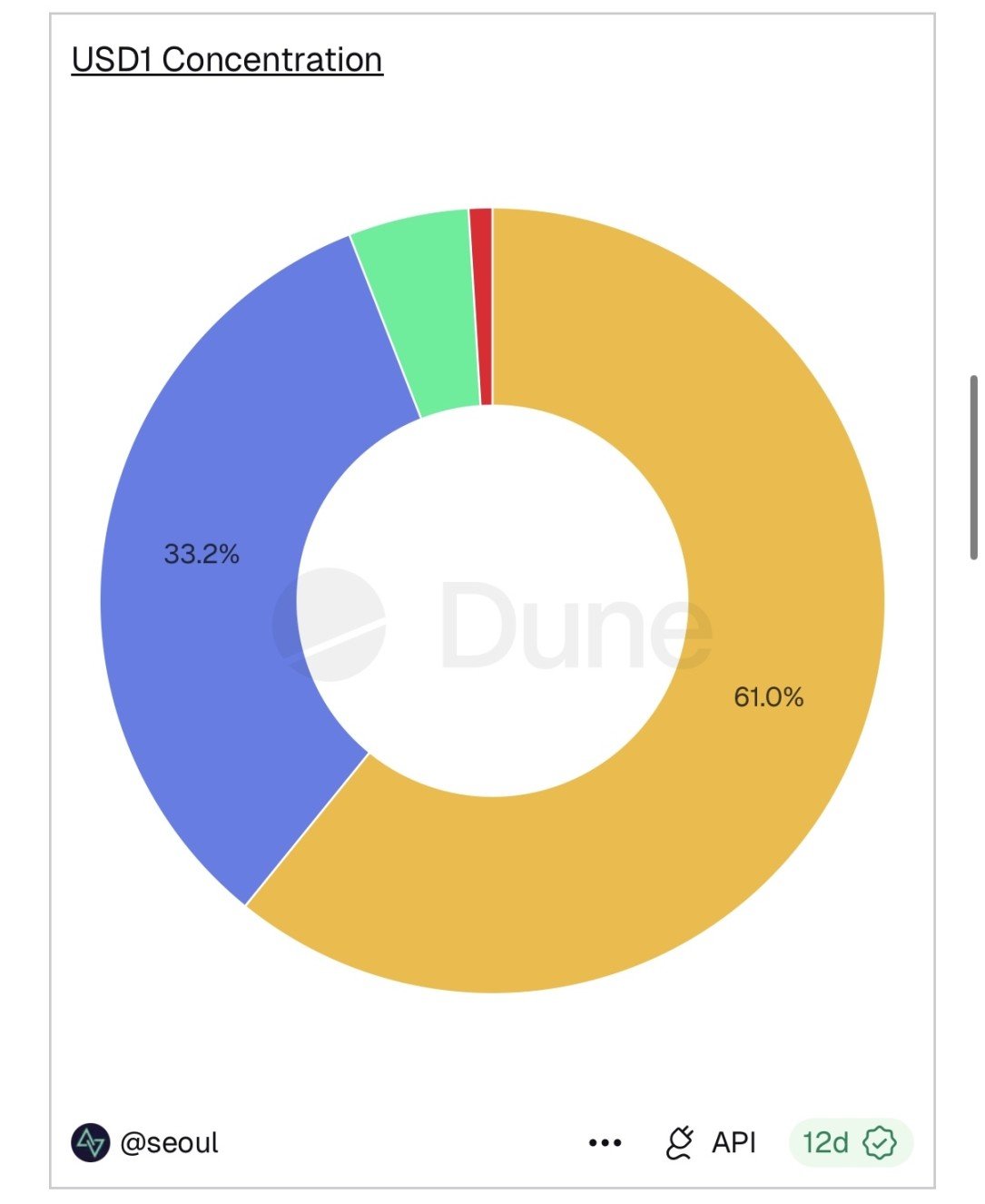 截至 2026 年 1 月 8 日(UTC+8),USD1 的市值约为 33.7 亿美元。从链上分布来看,其发行主要集中在 BSC 和以太坊主网,分别约为 19.12 亿美元和 12.85 亿美元,两者合计占据绝大多数份额。相比之下,Solana 网络上的 USD1 规模约为 1.37 亿美元,占比明显较低。尽管 WLFI 在生态叙事和合作方向上持续强调对 Solana Meme 生态的支持,但从实际存量来看,USD1 当前仍主要依赖传统 EVM 网络的流动性结构。