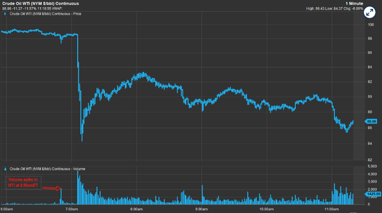 股票与原油市场早盘同步出现的成交量尖峰,其时机引起了交易员的关注——尤其是在放量发生时,并无明显的催化剂推动。